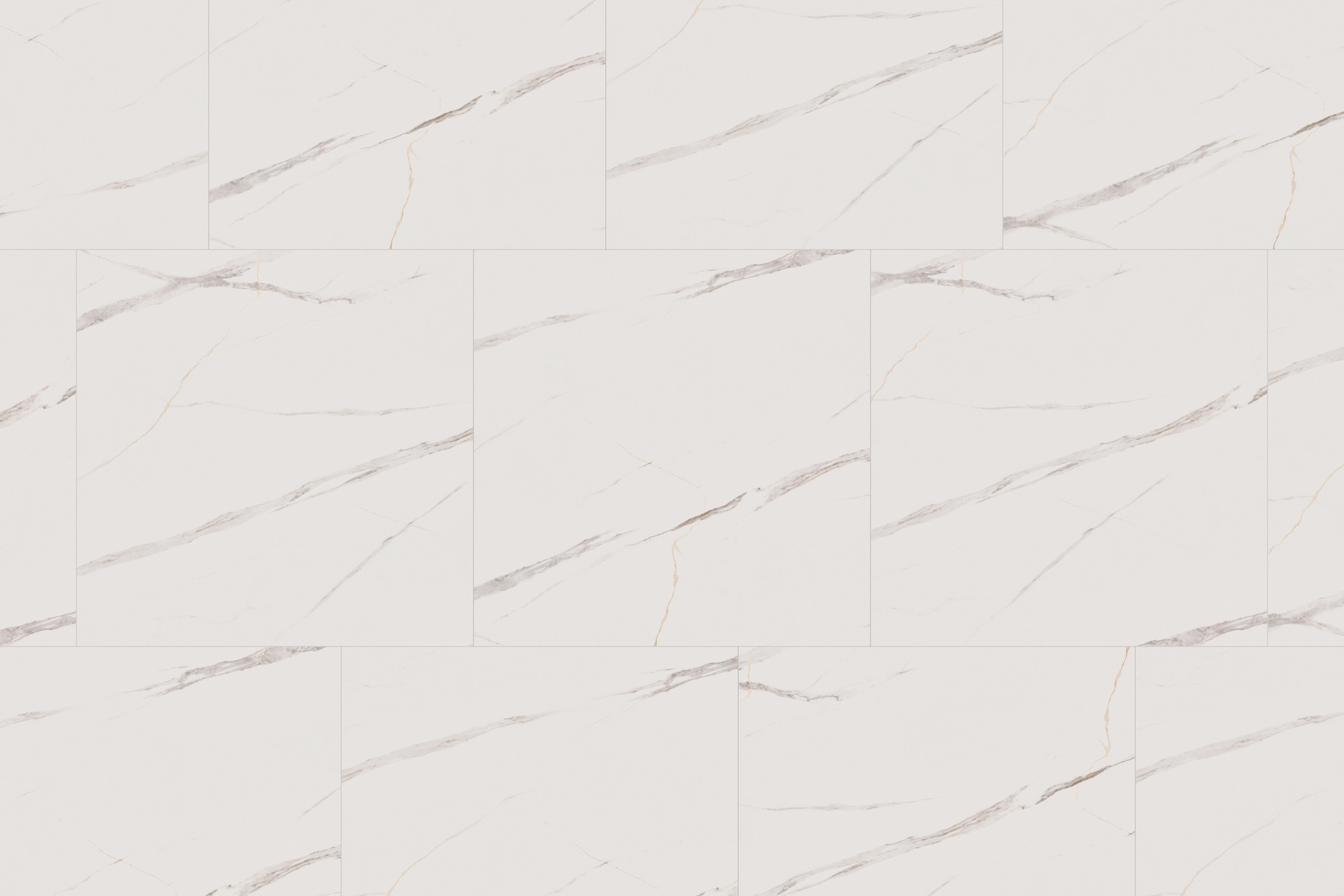 Коллекция клеевого кварц-винила под большой формат мраморных плит в размере 914x914. Тот случай, когда размер не только имеет значение, но и позволяет существенно сократить время монтажа и взглянуть на холодный мрамор, как на нечто новое, теплое и приятное для ходьбы.